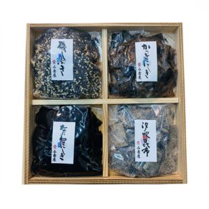 少し硬めの味付け昆布を4~5層積み、香辛料が少し効いた珍味おやつ昆布。バス旅行や茶話会のお供に。